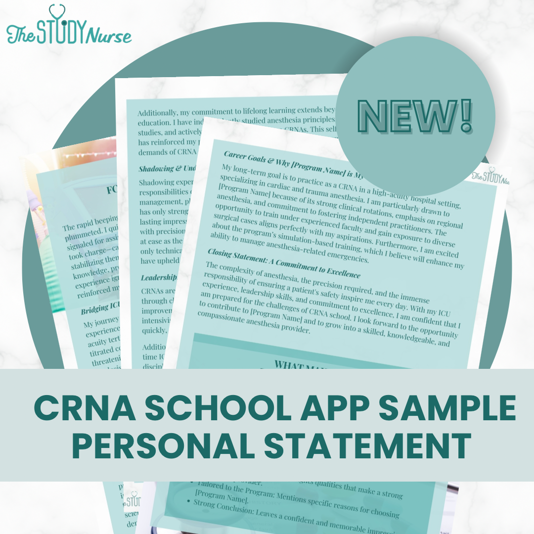 Welcome to our Pre-CRNA Sample Hub—your go-to spot for low cost, high-impact resources designed to support your CRNA school journey! Here, you’ll find sample entries from our Critical Care Experience Log and CRNA Shadow Log (both blank and completely filled in), along with sample personal statements and letters of reference. These samples are meant to be used alongside our in-depth guides like the Critical Care Experience Guide and the CRNA Shadow Playbook, which are available for purchase here and offer you a clearer picture of what a competitive application journey looks like. Use these tools to jumpstart your preparation—and when you’re ready to level up, our full guides are here to walk you through every step with confidence.