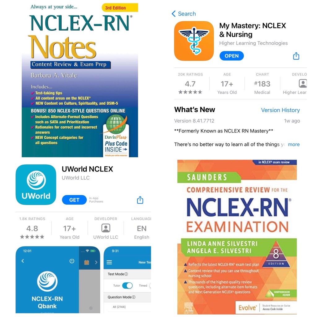 - NCLEX Mastery phone application (this is highly worth investing in for on-the-go studying)